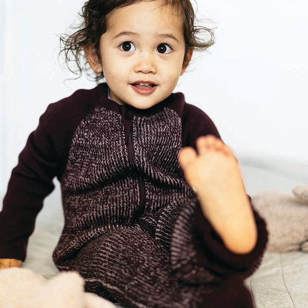 Merino Knitted Baby Sleepsuit Plum
