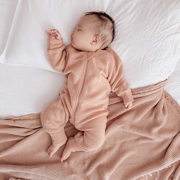 Merino Fleece Sleepsuit with Sleeves Salmon