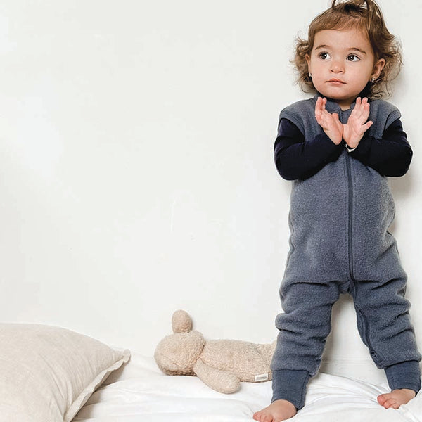 Merino Fleece Sleepsuit with Sleeves Dark Denim