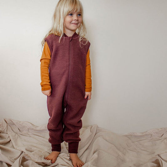 Merino Fleece Sleepsuit with Sleeves Salmon