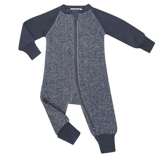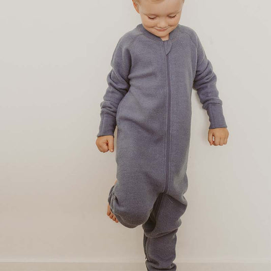 Merino Fleece Sleepsuit with Sleeves Dark Denim