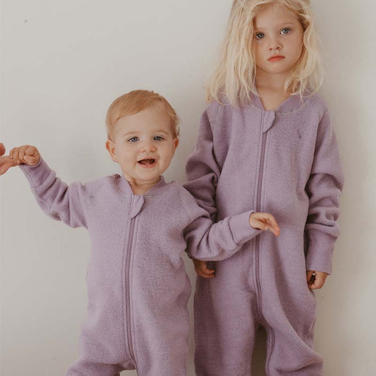 Merino Fleece Sleepsuit with Sleeves Lavender