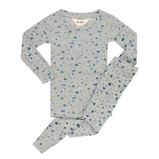Merino Wool Layer Set Pyjamas Forest Print Grey Marle