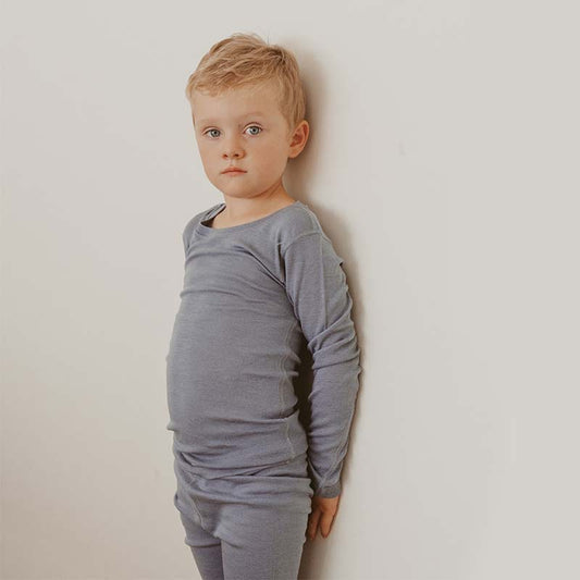 Merino Wool Thermal Pyjama Set Dusty Blue Marle