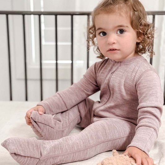 Merino Wool Baby Thermal Onesie Mauve Marle