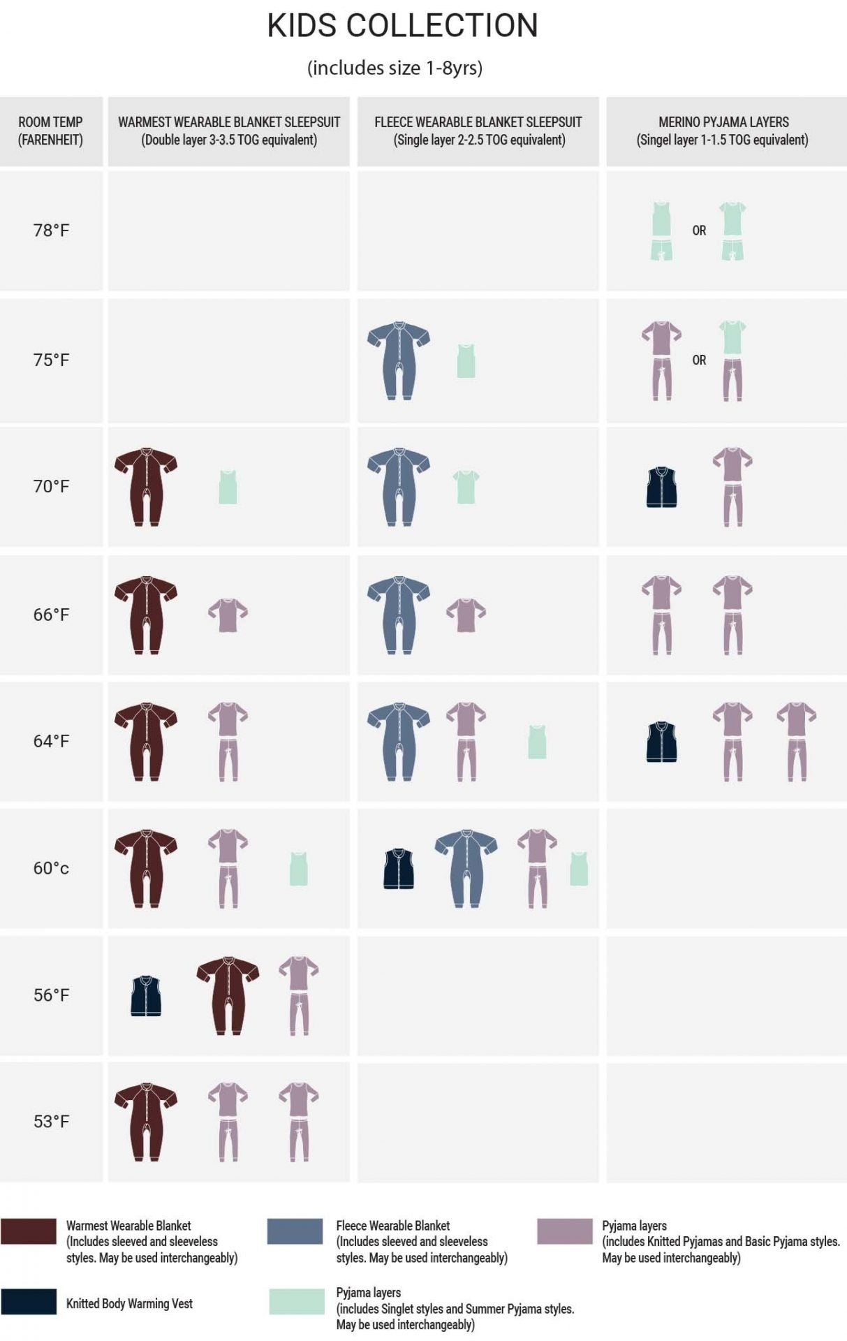 We recommend dressing your child in layers of Merino wool to keep them warm and comfortable throughout the night.
