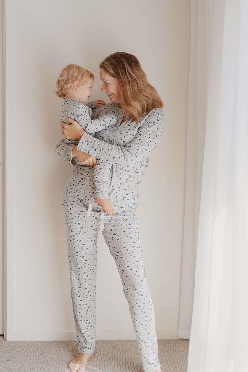 Women's Merino Button Pyjama Forest Print Grey Marle